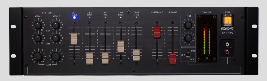 EIA規格に適合したラックマウントの出来る3Uサイズの業務用オーディオミキサーは、フィットネスやスポーツジム、またはフィットネスクラブ・スポーツクラブのスタジオなど音響設備が必須な施設における現場のニーズに徹底的に拘って設計されました。